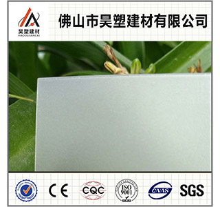 (10)耐候性: P C磨砂板可以在-40℃至120℃范圍保持各項物理指標的穩定性。人工氣候老化試驗4000小時,黃變度為2,透光率降低值僅0.6%。