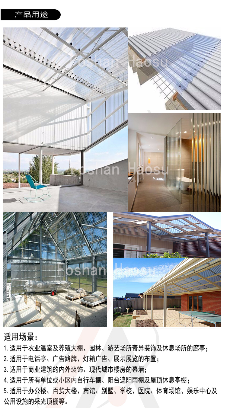 主營:PC波浪瓦、PC耐力板、PC潔光板、PC陽光板、PC雨陽蓬、PC壓條、PC配件,承接任何塑料工藝成型深加工,昊塑板材具有:抗紫外線、耐老化、抗沖擊、隔音、隔熱、難燃等優(yōu)異性能,成為樓頂采光、高速公路隔音、燈箱廣告、候車廳、家居陽臺等的不錯之選。