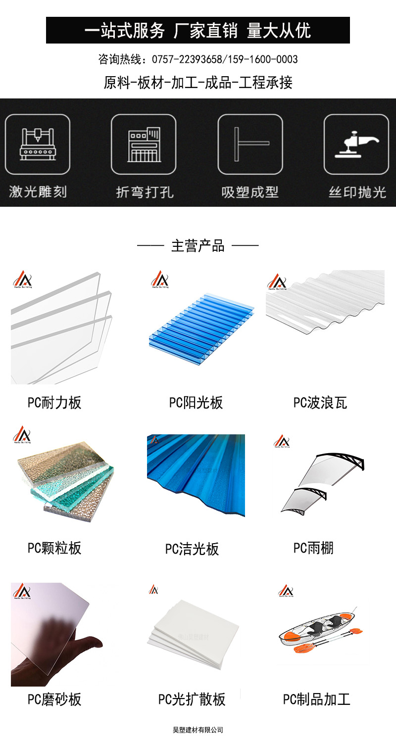 主營:PC耐力板、PC波浪瓦、PC陽光板、雨陽蓬、PC壓條、PC配件,承接任何塑料工藝成型深加工